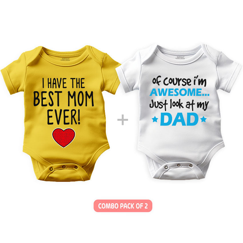 I have The Best Mom Ever & Of Course I'm Awesome Just Look at My Dad– Combo Pack of 2 Rompers ❤
